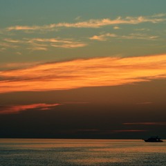 Прекрасне фото! Теплі промені заходу пробиваються крізь хмари, створюючи атмосферний світловий ефект, а силует човна додає відчуття спокою й масштабу.