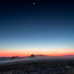 Foggy night over farm lands