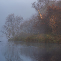 Теги: озеро, осінь, світанок, туман