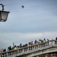 Люди, що зібралися на мосту з українськими прапорами та символікою, демонструють беззаперечну підтримку воїнам, які сьогодні стоять на захисті не лише своєї землі, а й цінностей усієї Європи. |
